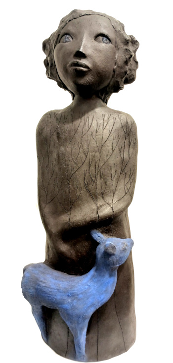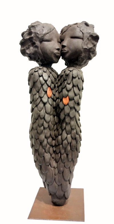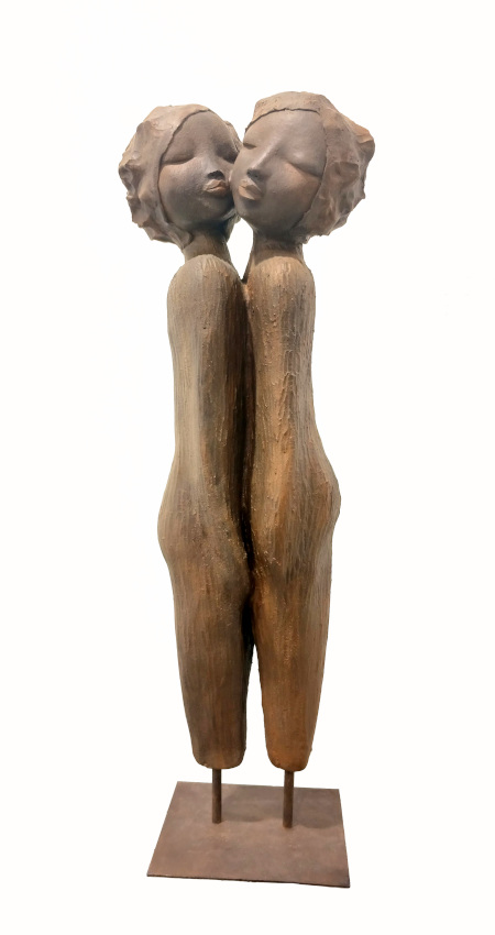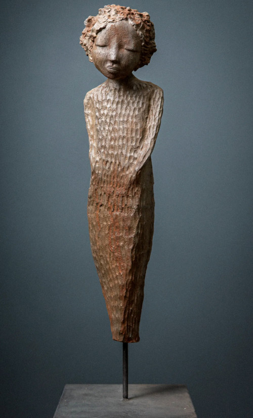 Elle fait naître ses personnages de blocs de grès (blanc ou noir) dont elle rehausse parfois délicatement certains détails de pigments naturels.Des œuvres tendres et attachantes, toujours des pièces uniques. A découvrir…