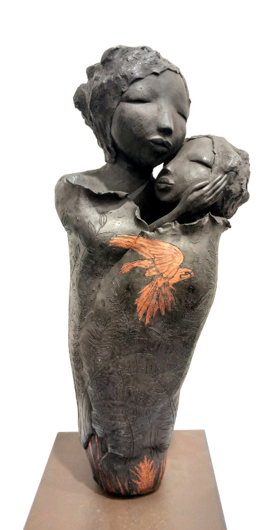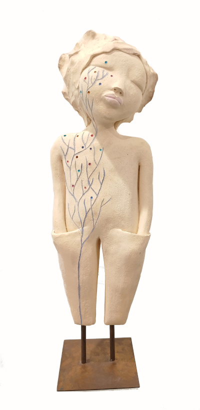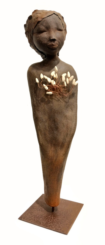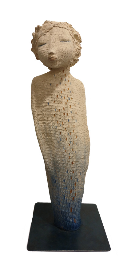 Baignée dans l’univers de l’art dès son plus jeune âge puisque cette artiste est fille de sculpteur, elle a débuté son propre parcours artistique avec la résine avant de passer rapidement au travail de la terre.