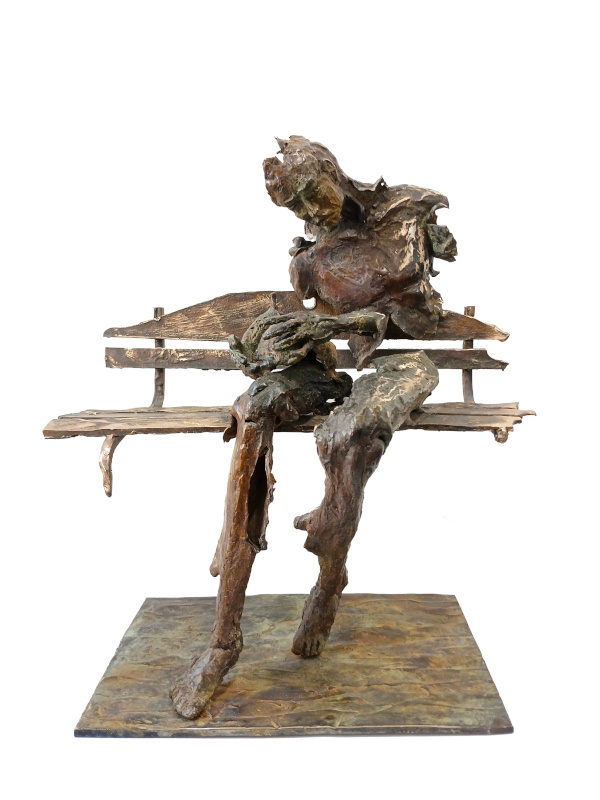 Homme sur le banc (37x42x26 cm) – Bronze à la cire perdue, pièce unique