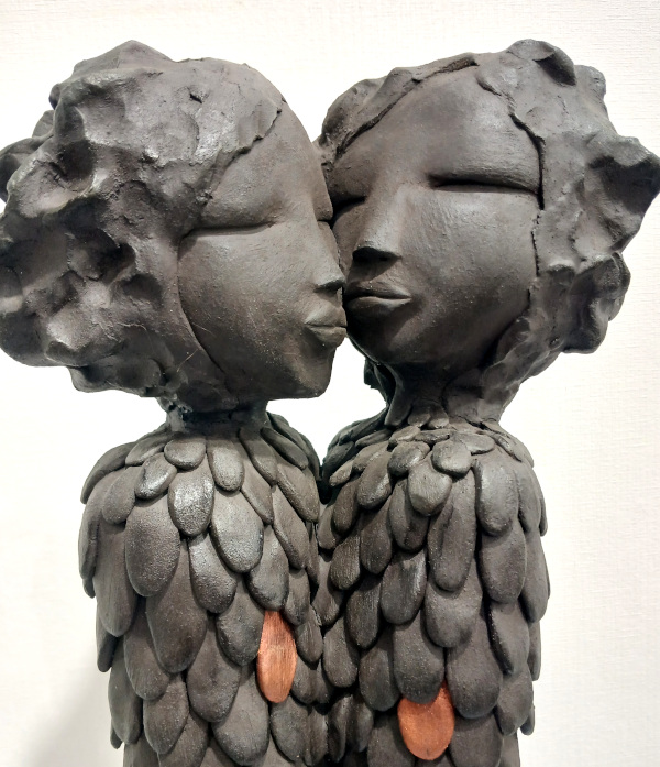 Elle fait naître ses personnages de blocs de grès (blanc ou noir) dont elle rehausse parfois délicatement certains détails de pigments naturels.Des œuvres tendres et attachantes, toujours des pièces uniques. A découvrir…