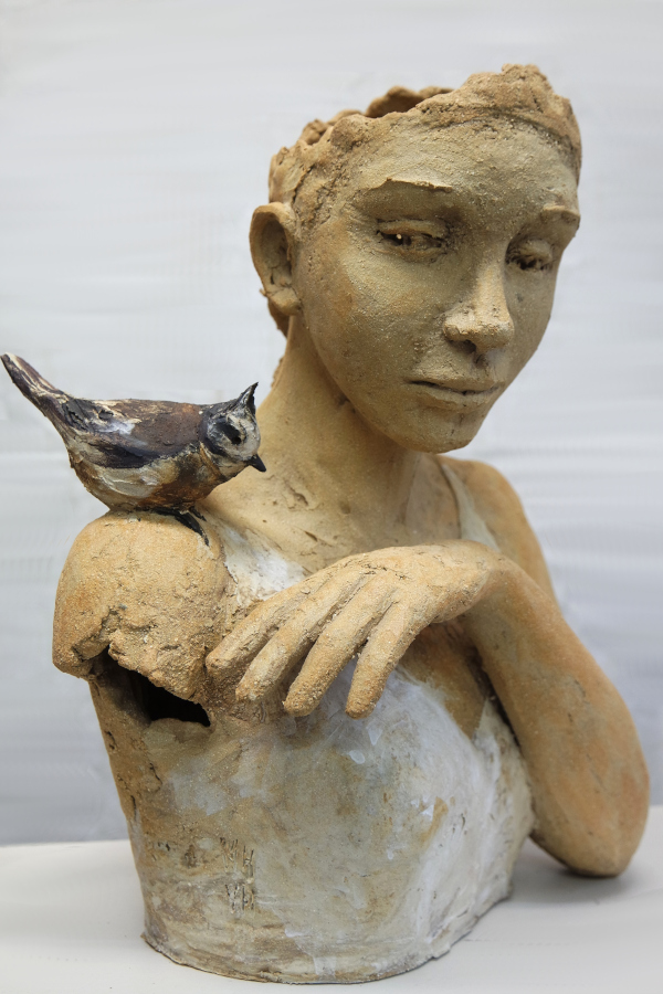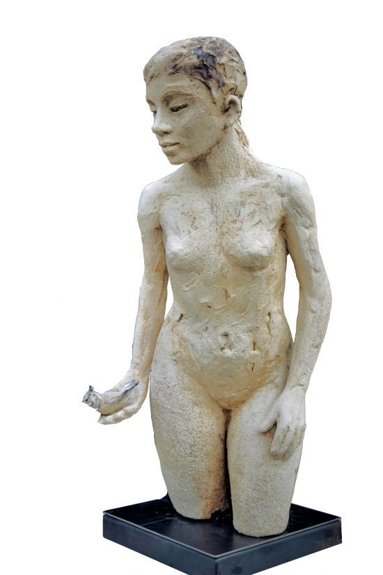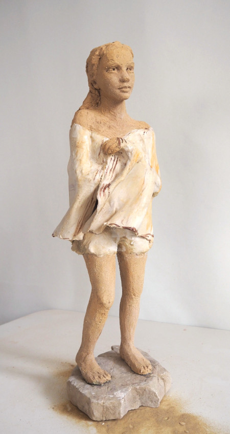 Mercredi (83x40x25 cm) – Grès, engobe porcelaine, patine à la chaux, pigments et cire – NOUVEAUTE
