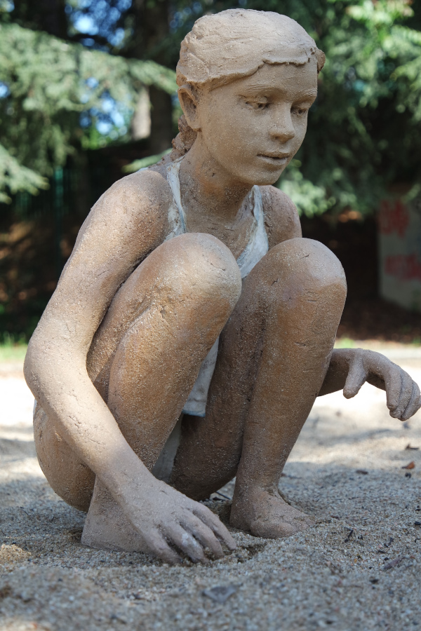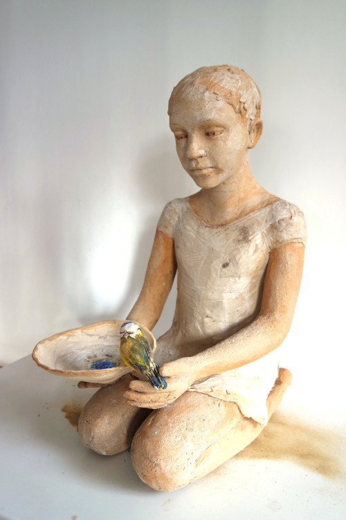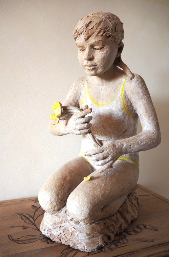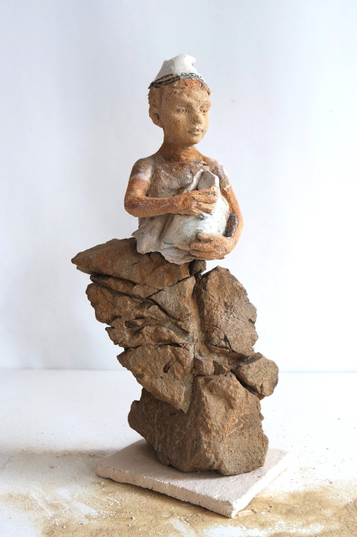 Les petits et grands enfants de M.H. Vallade Huet sont des sculptures en grès, terre, oxydes et âme… en pièces uniques! On perçoit la brise souffler sur les vêtements, le soleil caresser les visages, la douceur habiter ces sculptures…