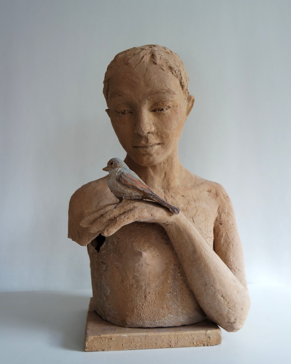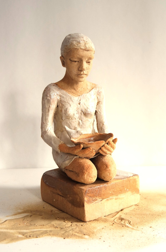 Dans le modelage des formes, je recherche avant tout la fluidité, avec une justesse qui reste suggestive- sans trop dire, sans lisser la terre pour ne pas affadir le geste. Là est toute la subtilité et difficulté du travail.»