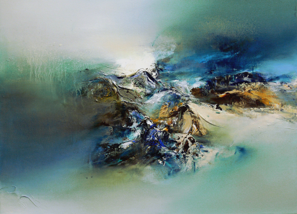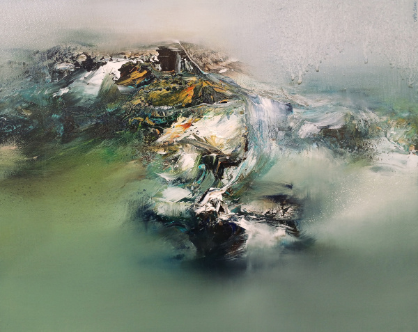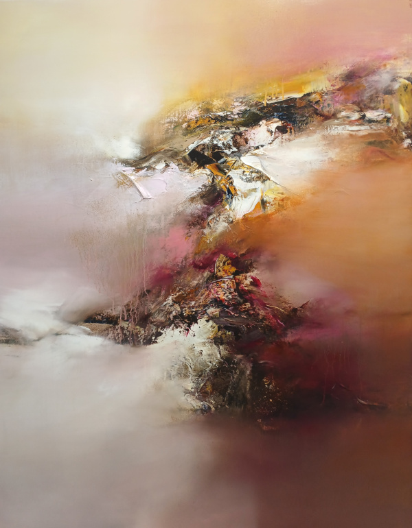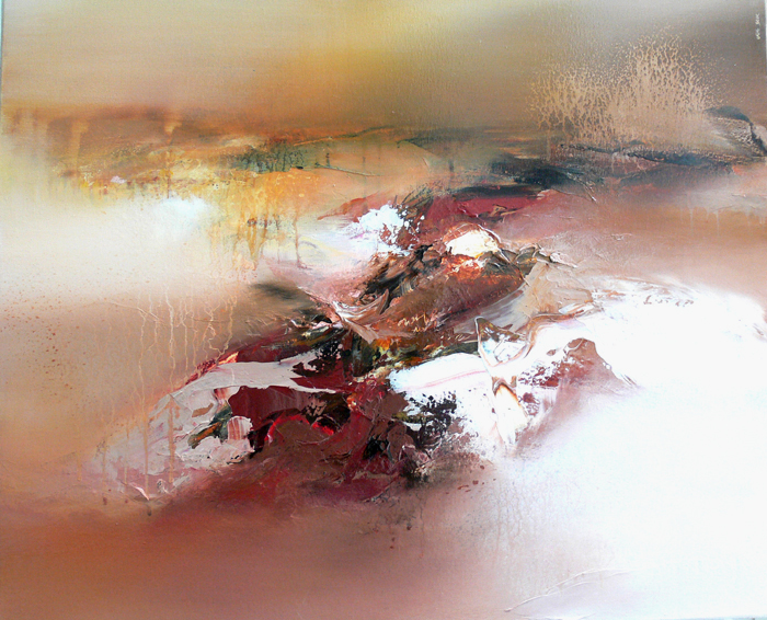Force et sensualité de l’abstraction lyrique, ces œuvres sont en perpétuelle mutation. Les toiles sont riches, complexes tout en défiant la pesanteur. Des contours légers et vaporeux se heurtent au cœur en mouvement, tout en matière, trouvant son équilibre au milieu du chaos originel…